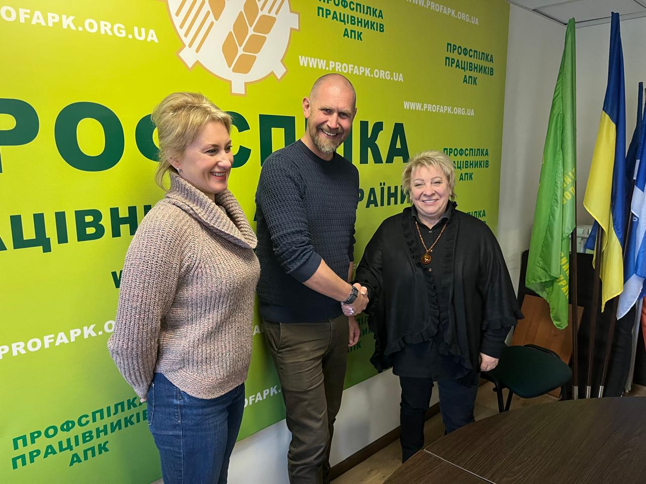 У робочій зустрічі взяли участь проєктний менеджер проєктів 3F в Україні Віолета Коломацька, Андрій Попов — тренер з протимінної безпеки Профспілки, та Юлія Кухаренко — фінансовий менеджер проєктів Профспілки АПК.