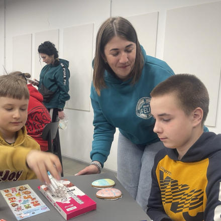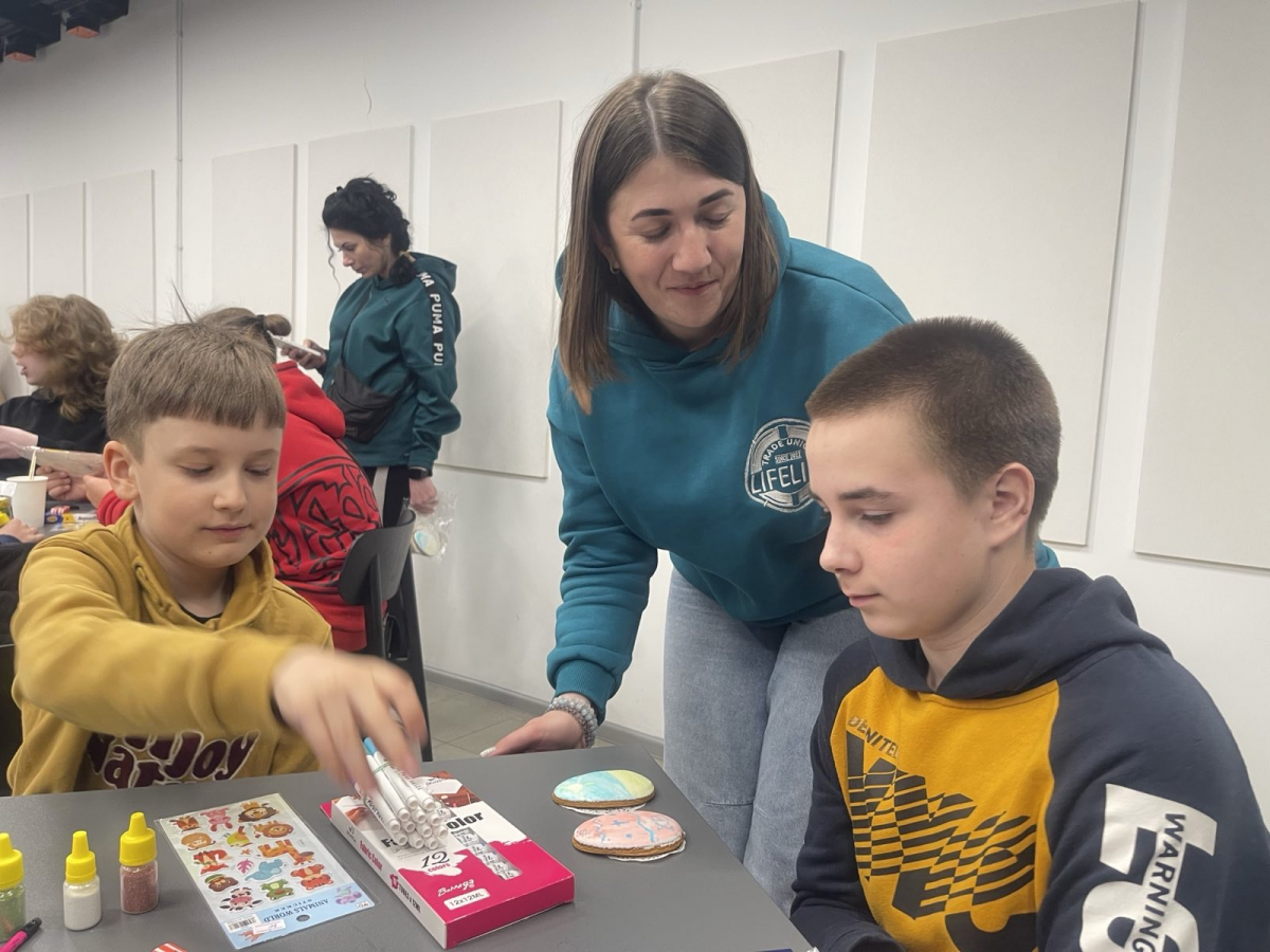 До заходу долучилися діти членів профспілки Дніпропетровської регіональної державної лабораторії Держпродспоживслужби. Разом із ветеранами, які пройшли шведську програму перекваліфікації та опанували професії пекарів і кондитерів, діти з любов’ю прикрашали великодні пряники. Також вони створювали щирі листівки для наших захисників на фронті.